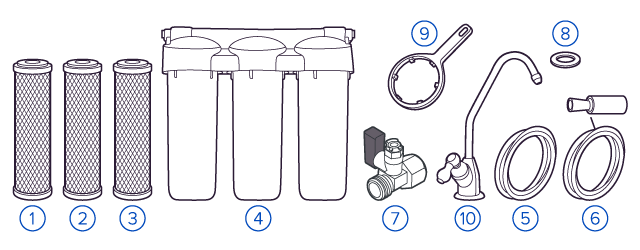В фильтрах обратного осмоса установлена мембрана, которая не пропускает ничего, кроме воды (вода проходит через неё под давлением). Такой фильтр делает безопасной водопроводную воду любого качества, удаляя все вредные примеси: бактерии, вирусы, хлор, тяжелые металлы, нитраты, фармацевтику. Обратноосмотические фильтры используются для абсолютной защиты от накипи, т.к. полностью устраняют соли жесткости из воды. |