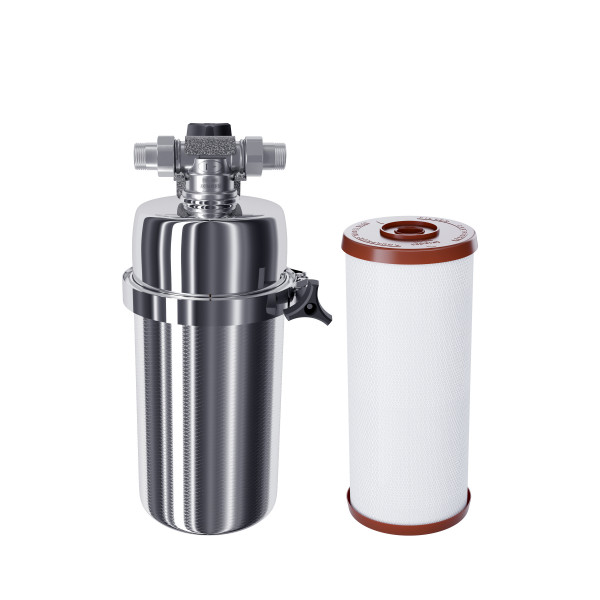 • Магистральный фильтр среднего размера для глубокой фильтрации воды. Модель оснащена быстросъемным креплением «американка». Нижний полукорпус изготовлен из нержавеющей стали марки AISI 316, особенно устойчивой к коррозии и высоким температурам.
